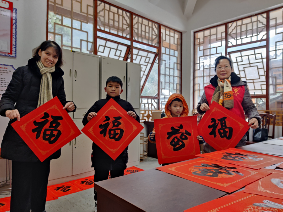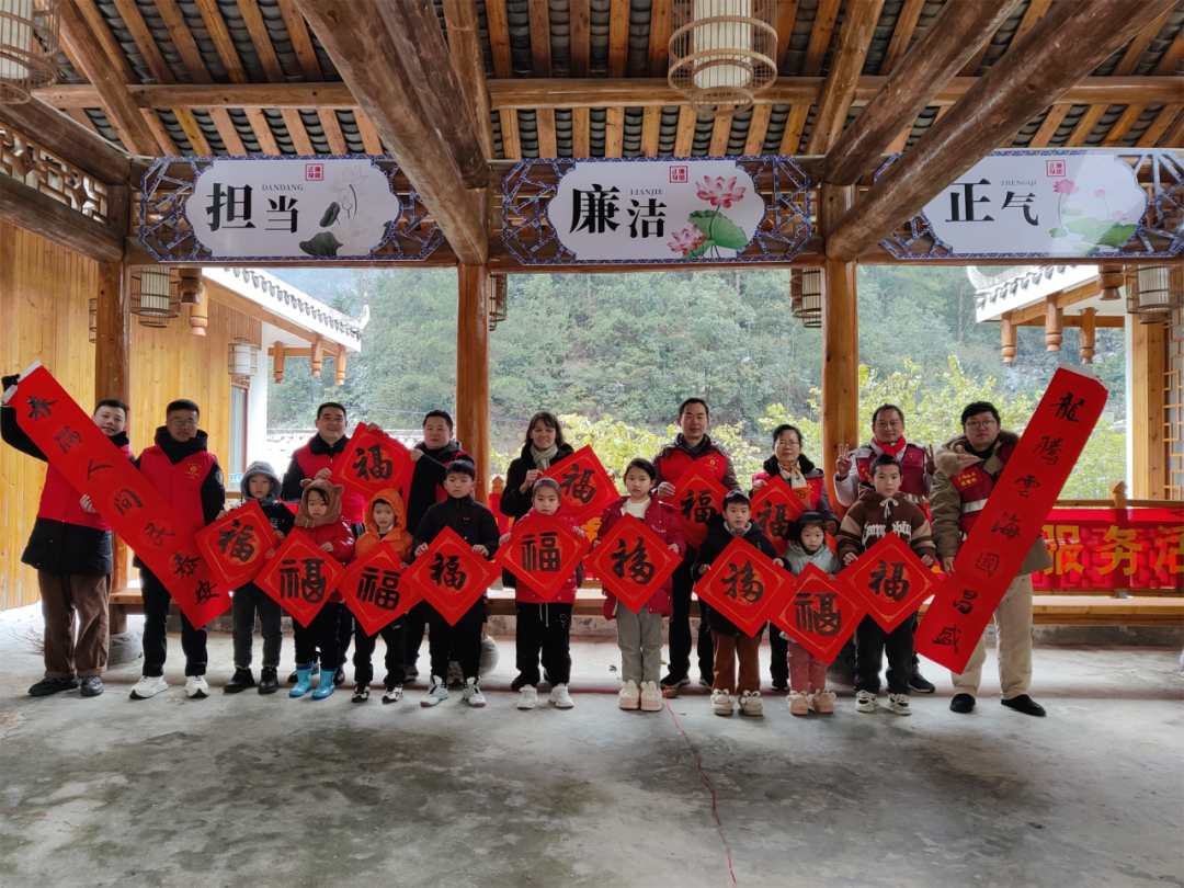 文旅集團(tuán)“國企工匠”文化志愿服務(wù)隊(duì)員向村民贈送新春“福”字,還為培秀村脫貧戶、監(jiān)測戶贈送了毛毯等新春慰問品,祝福大家新年快樂!