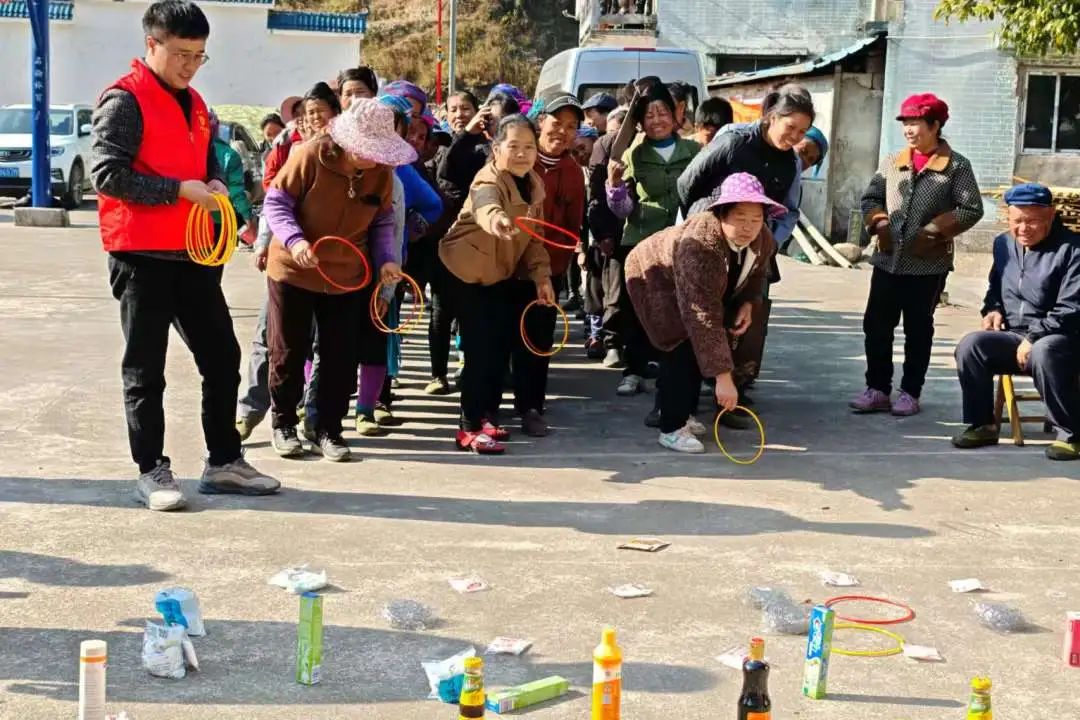 為營造濃厚的新春佳節(jié)氛圍,進一步鑄牢中華民族共同體意識,工作組在培秀村開展了“暖心關(guān)愛 迎春送?!毙麓河螆@活動?,F(xiàn)場設(shè)置了歡樂投壺、幸運套圈、魅力投籃、魔力足球等趣味項目。村民們熱情高漲,紛紛踴躍參與其中,現(xiàn)場氛圍熱烈非凡,歡聲笑語不斷?;顒幼尵用裨跉g樂祥和的氛圍中迎接新年,深切感受黨的溫暖與關(guān)懷,進一步增強了村民間的凝聚力與活力。