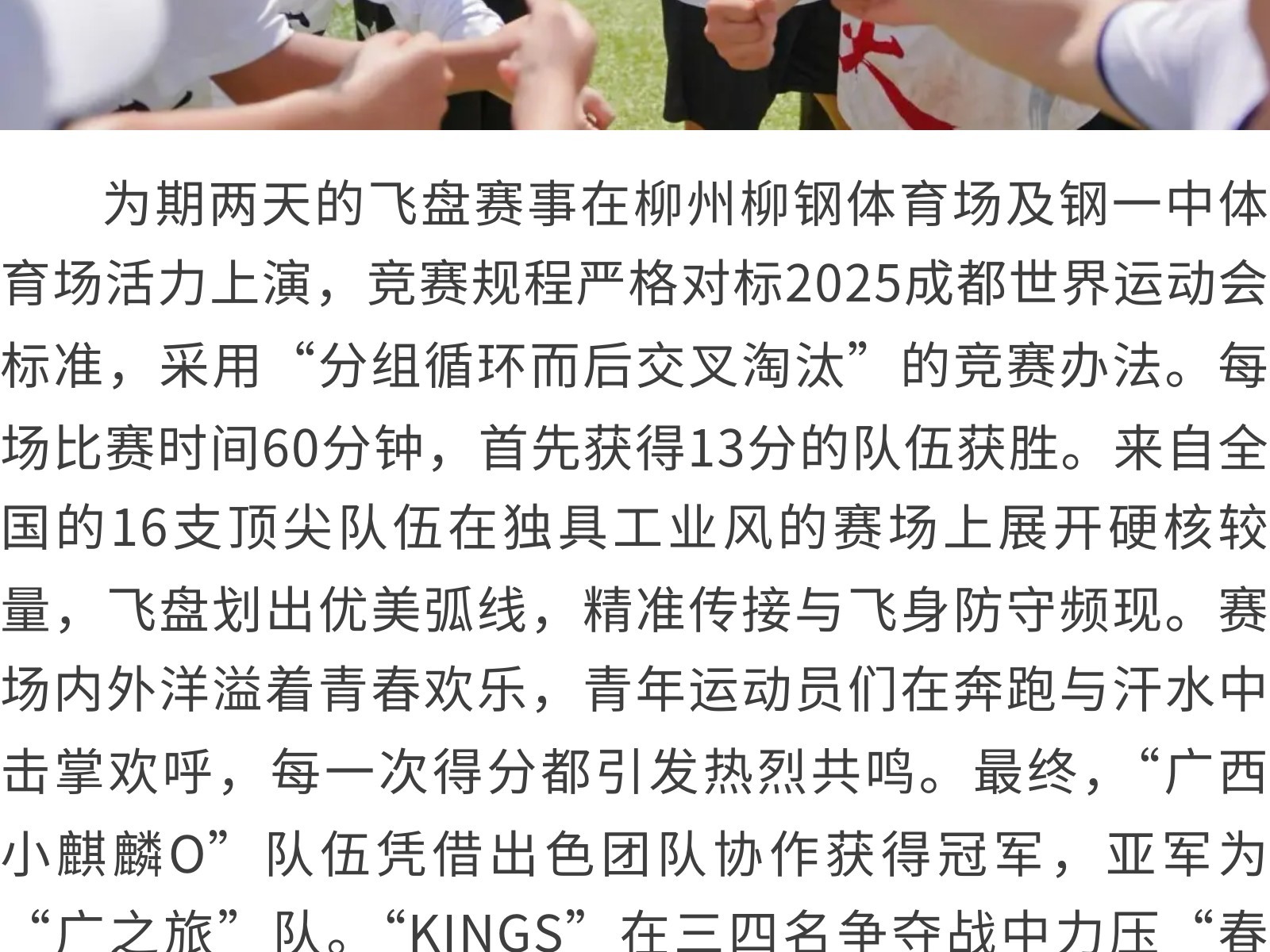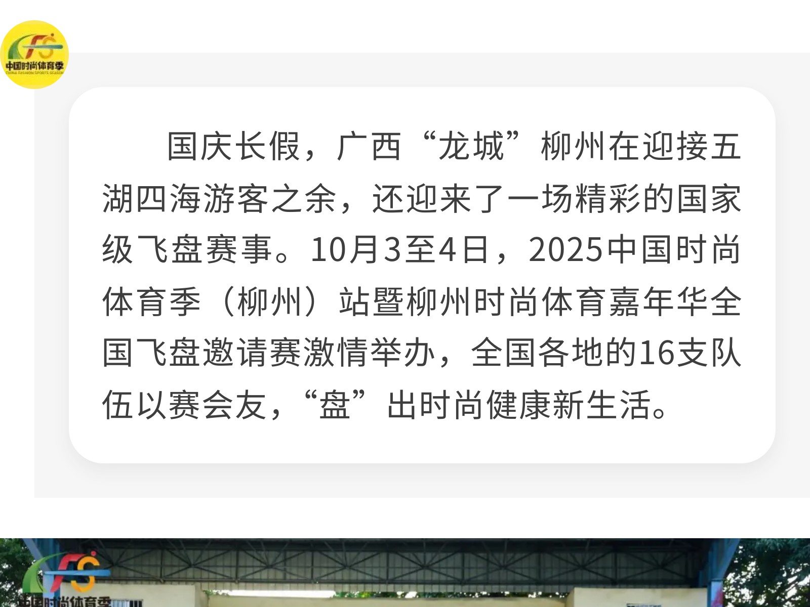 “盤”出時尚健康新生活,廣西柳州承辦國家級飛盤賽 發(fā)布時間:2025年10月05日 17時來源:本站原創(chuàng)瀏覽:187 人次