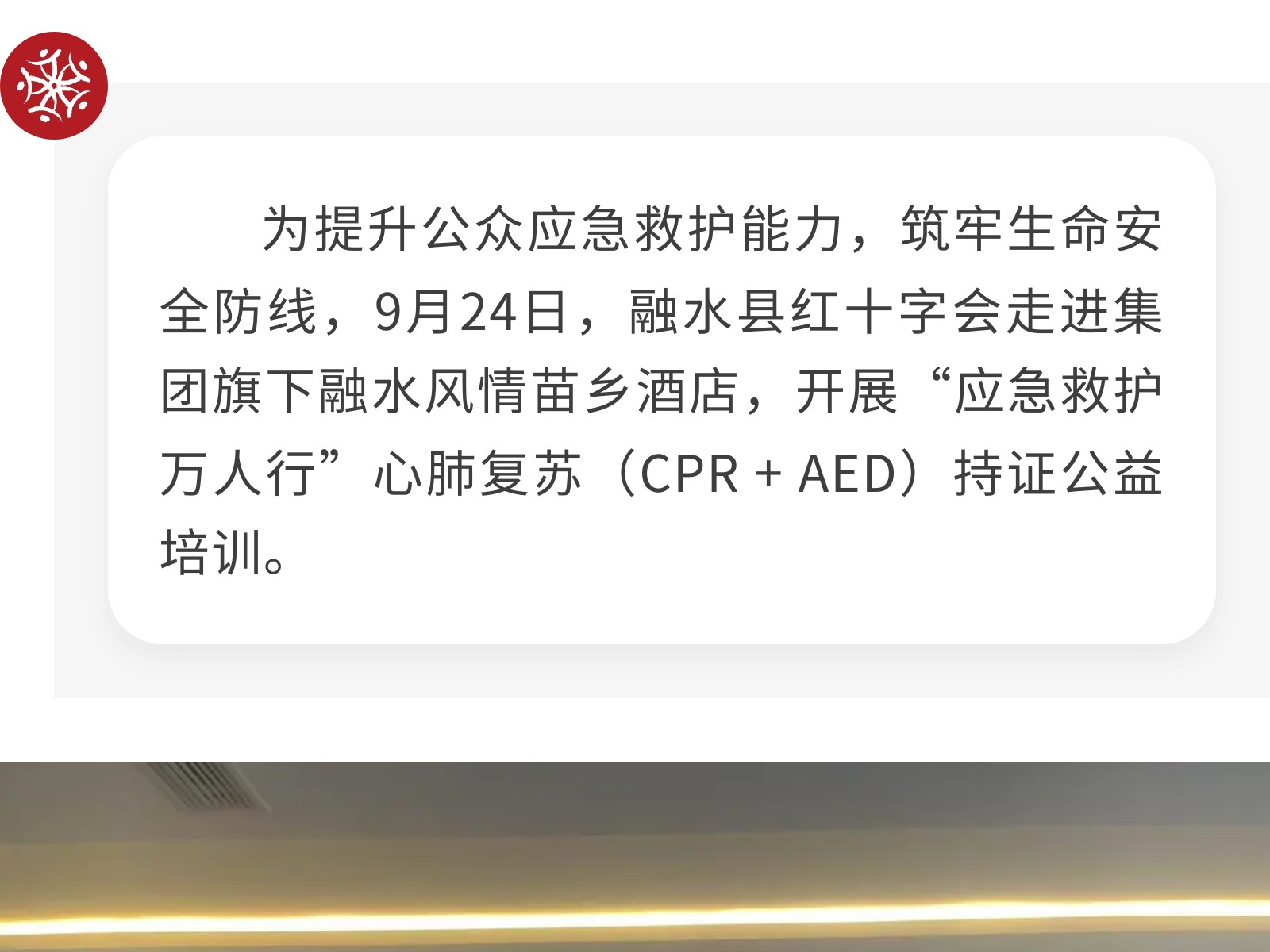 融水縣紅十字會到集團旗下融水風苗鄉(xiāng)酒店開展“應(yīng)急救護萬人行”心肺復(fù)蘇持證公益培訓(xùn) 發(fā)布時間:2025年10月14日 15時來源:本站原創(chuàng)瀏覽:154 人次
