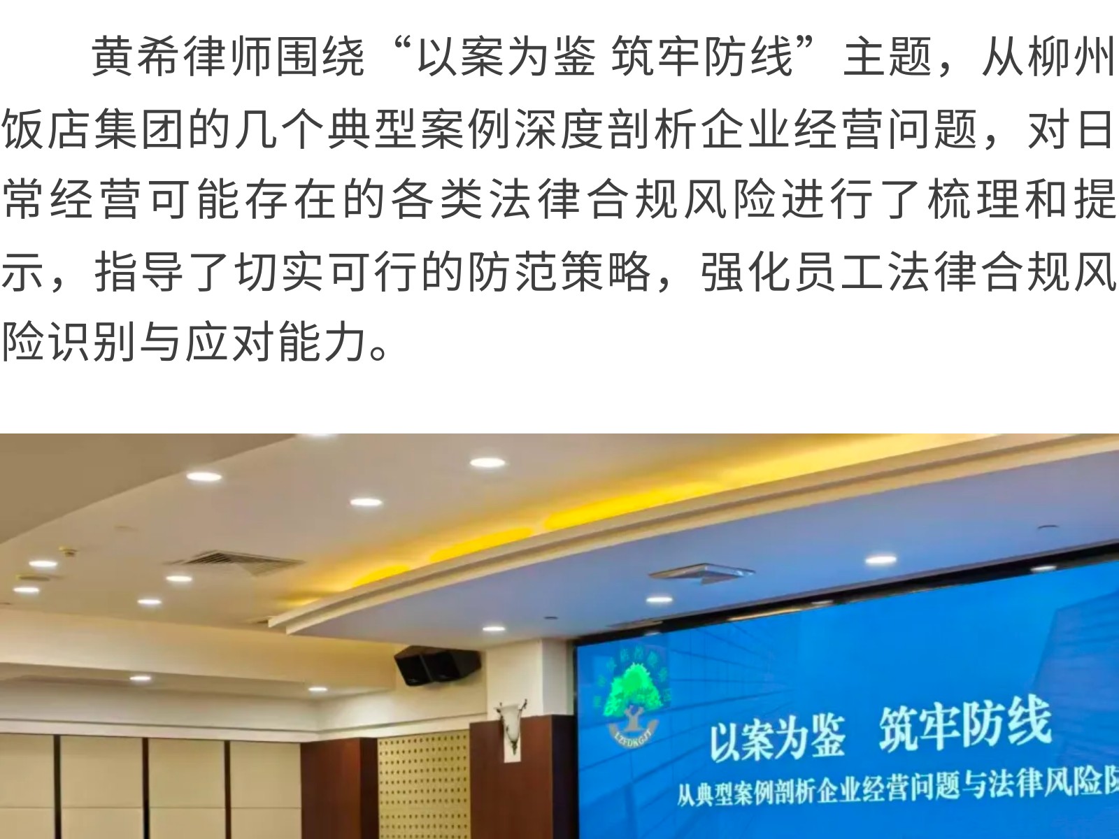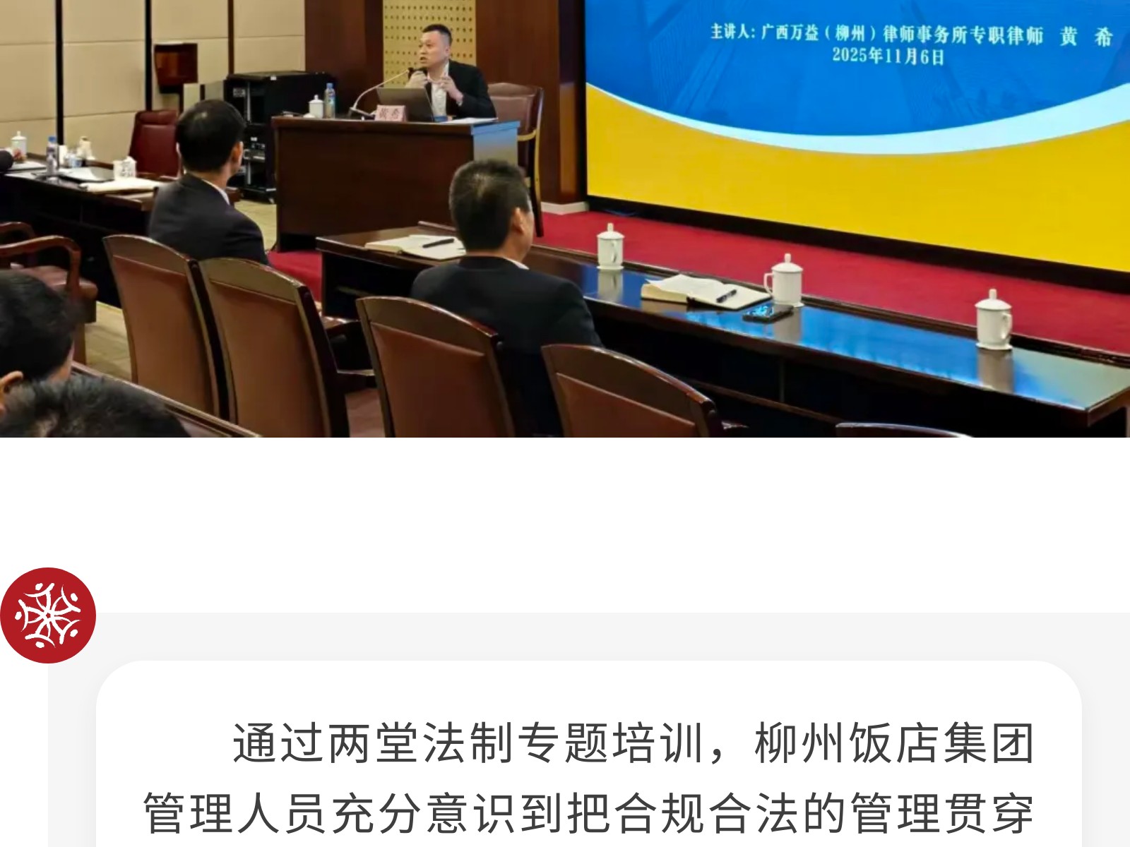 【風(fēng)起于青萍之末,浪成于微瀾之間】柳州飯店集團(tuán)開展法律專題培訓(xùn) 發(fā)布時間:2025年11月13日 15時來源:本站原創(chuàng)瀏覽:73 人次