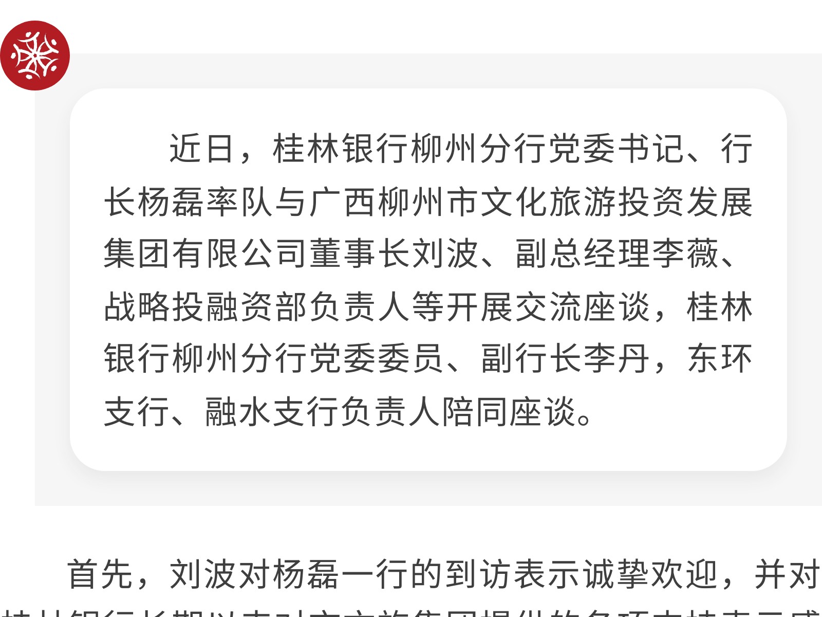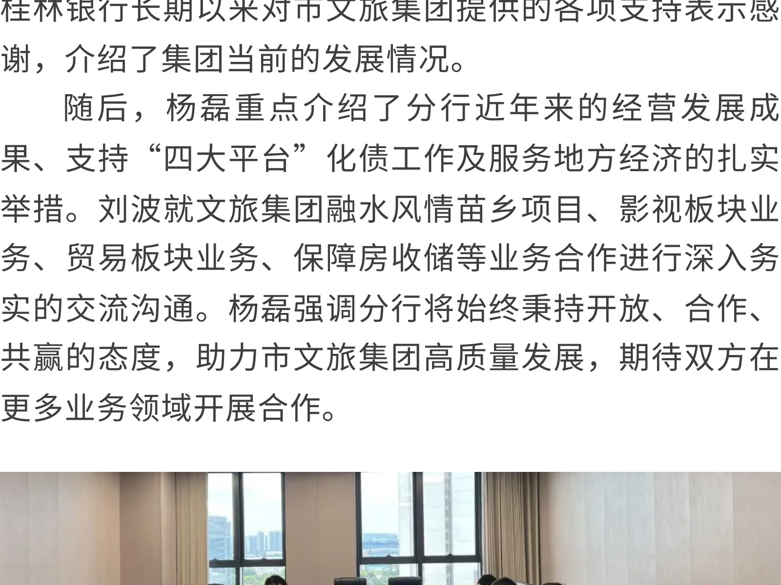 桂林銀行柳州分行到市文旅集團(tuán)開(kāi)展交流座談 發(fā)布時(shí)間:2025年11月28日 09時(shí)來(lái)源:本站原創(chuàng)瀏覽:75 人次