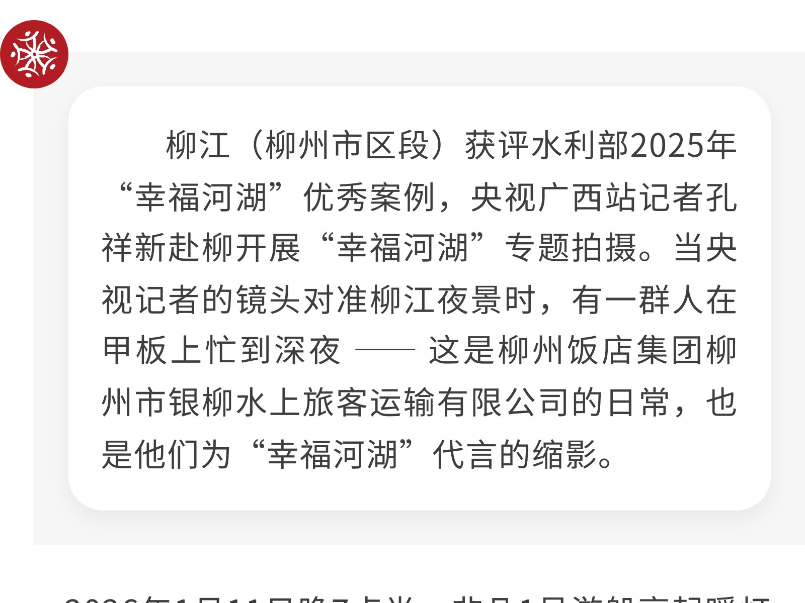 央視鏡頭柳江美,銀柳水上暖心扉 發(fā)布時(shí)間:2026年02月06日 13時(shí)來源:本站原創(chuàng)瀏覽:43 人次