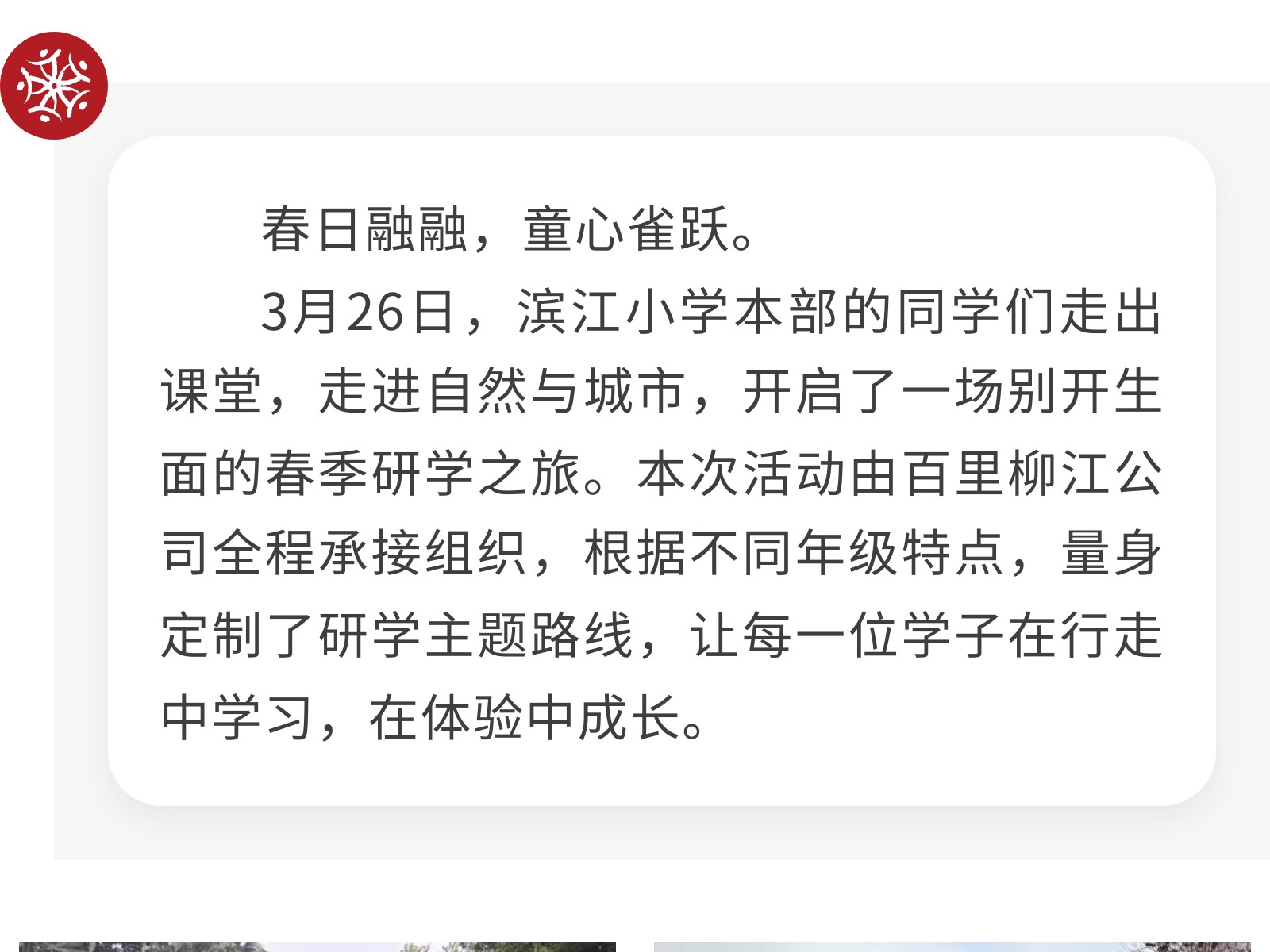 【春日好時(shí)光,研學(xué)正當(dāng)時(shí)】濱江小學(xué)2026年春季研學(xué)之旅圓滿舉行 發(fā)布時(shí)間:2026年04月07日 19時(shí)來(lái)源:本站原創(chuàng)瀏覽:19 人次