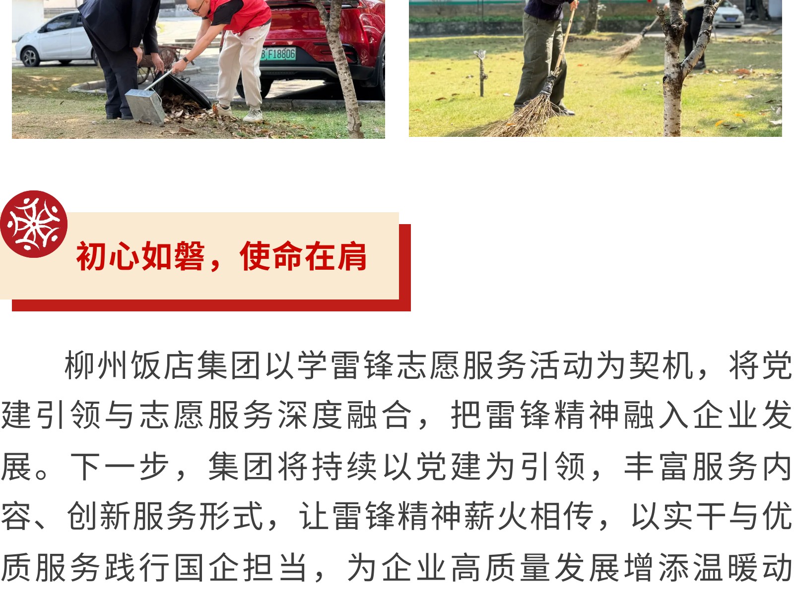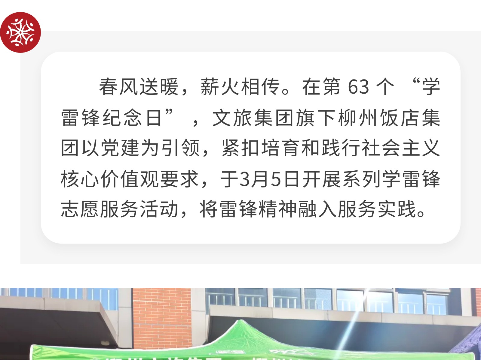 黨建引領(lǐng)聚初心 雷鋒精神綻芳華——柳州飯店集團(tuán)開展學(xué)雷鋒志愿服務(wù)活動(dòng) 發(fā)布時(shí)間:2026年03月10日 09時(shí)來源:本站原創(chuàng)瀏覽:23 人次